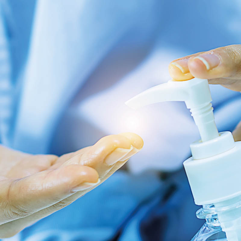 - Aplique el producto en la palma de su mano. Frote bien las superficies de las manos y los dedos hasta que se sequen.