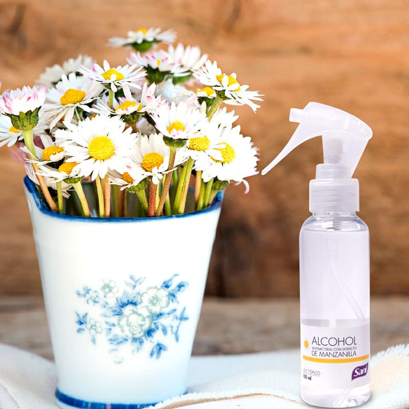 - Sani Alcohol Antibacterial con Extracto de Manzanilla 100 ml.