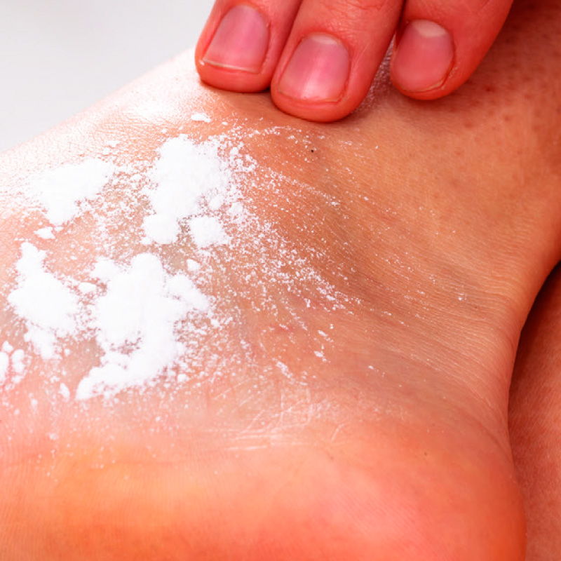 - Talc, Zea Mays Starch, Zinc Oxide, Boric acid, Camphor, Menthol, Triclosan